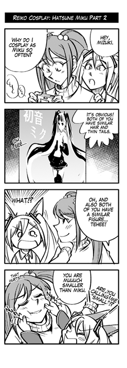 Reiko Cosplay: Hatsune Miku Part 2 on February 19, 2020 at 8:57 am Chapter: Mizuki SagaCharacters: Mizuki Wakashia, Reiko Tenshin Art by Sentzukabe Please follow and like us: └ Tags: Cosplay, Mizuki Saga, Reiko, vocaloid