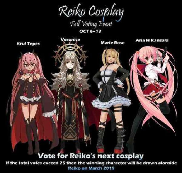 Vote for Reiko’s tenshin’s next cosplay. Reiko will cosplay as the next character on March 2018. If we exceed 25 votes then the character will be drawn alongside reiko. #manga #anime #cute #kawaii #cosplay #animegirl #fireemblem #krultepes #marierose #voting #poll #content